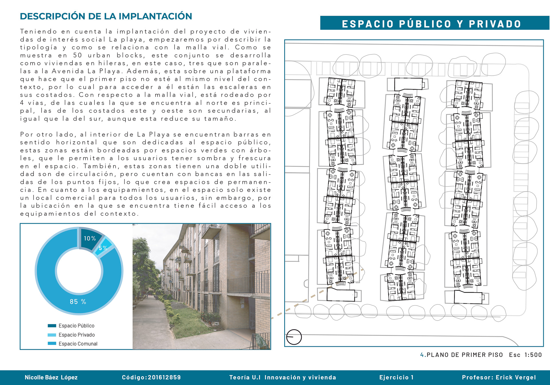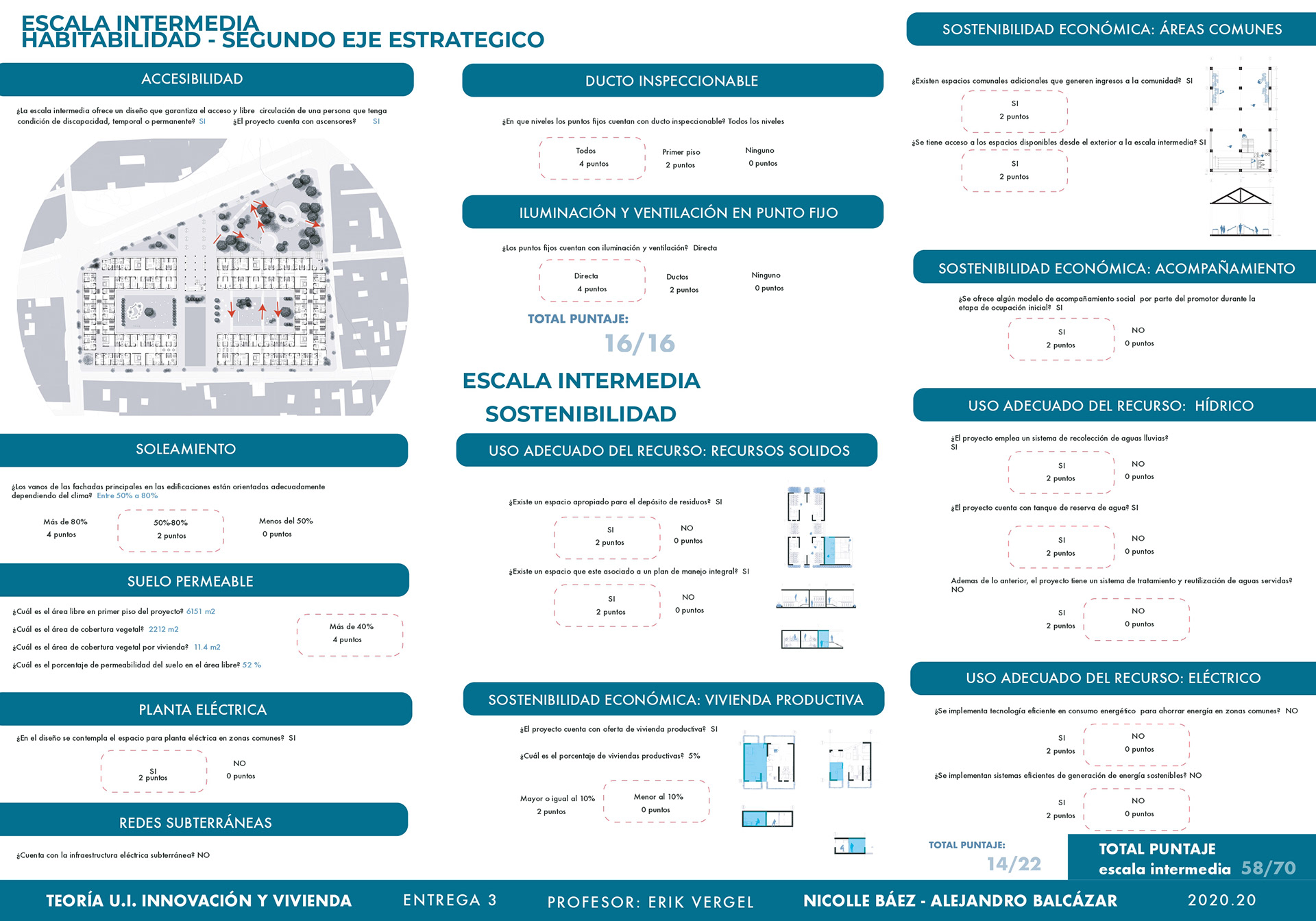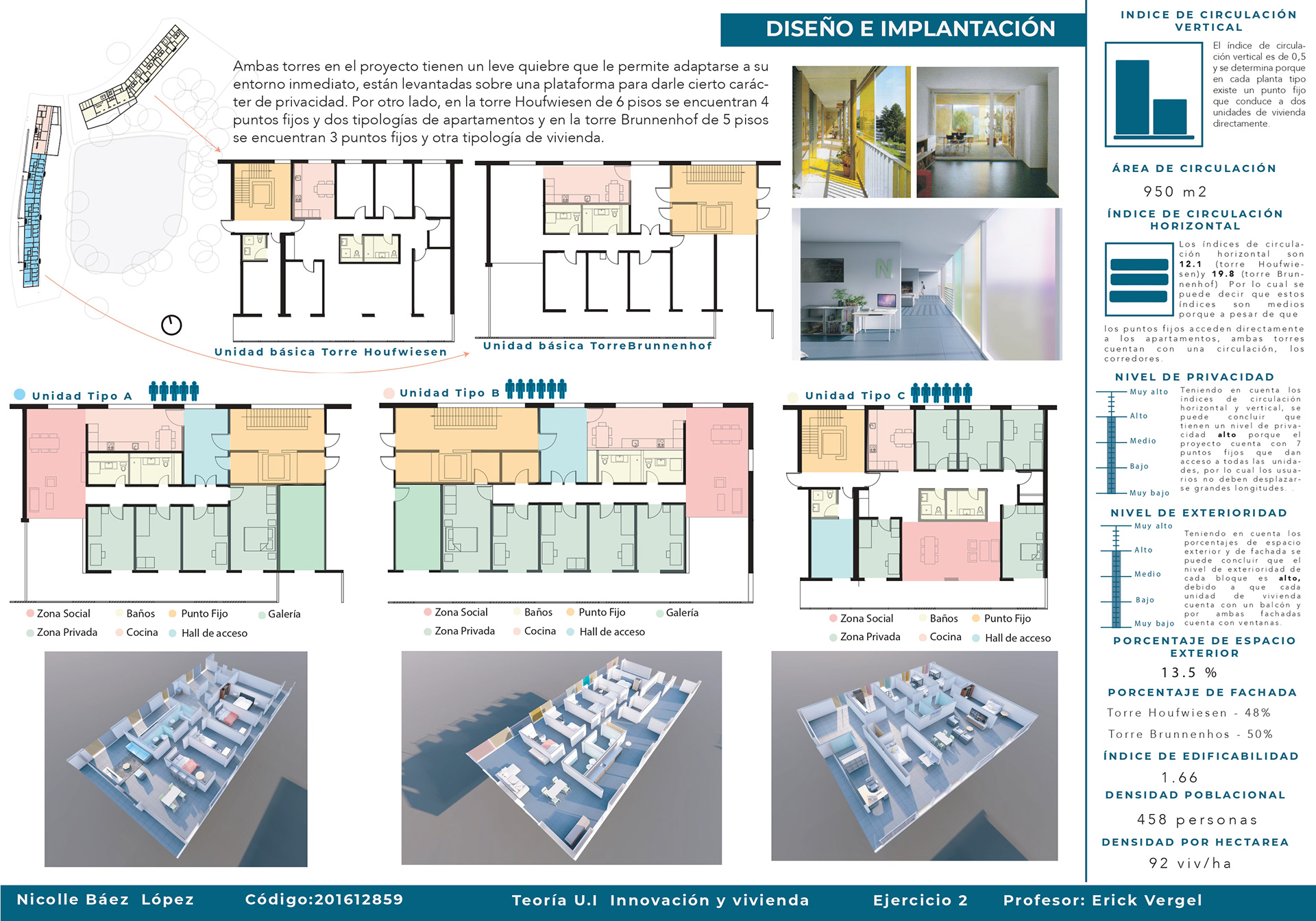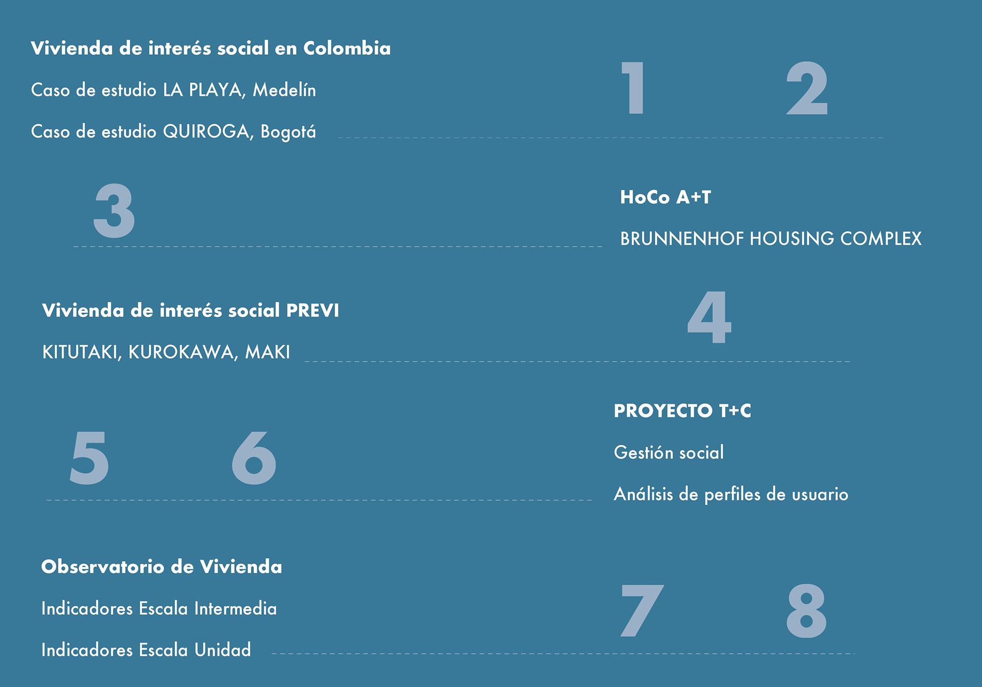 El curso de teorías de la unidad intermedia de Innovación y vivienda nos ayuda para analizar diferentes casos de estudio sobre vivienda de interés social a nivel nacional e internacional, los proyectos nos enseñan posibles soluciones de fachadas, diseño de espacios internos, desarrollo de la iluminación, ventilación y puntos fijos. También, se hizo un análisis de los perfiles de usuario y los equipamientos que se encontraban en el proyecto propuesto T+C. Para finalizar, se usaron las cartillas del Observatorio de vivienda para determinar los índices de escala intermedia y unidad, donde podíamos proponer nuevas soluciones para los problemas y observar donde estaba fallando nuestra propuesta.