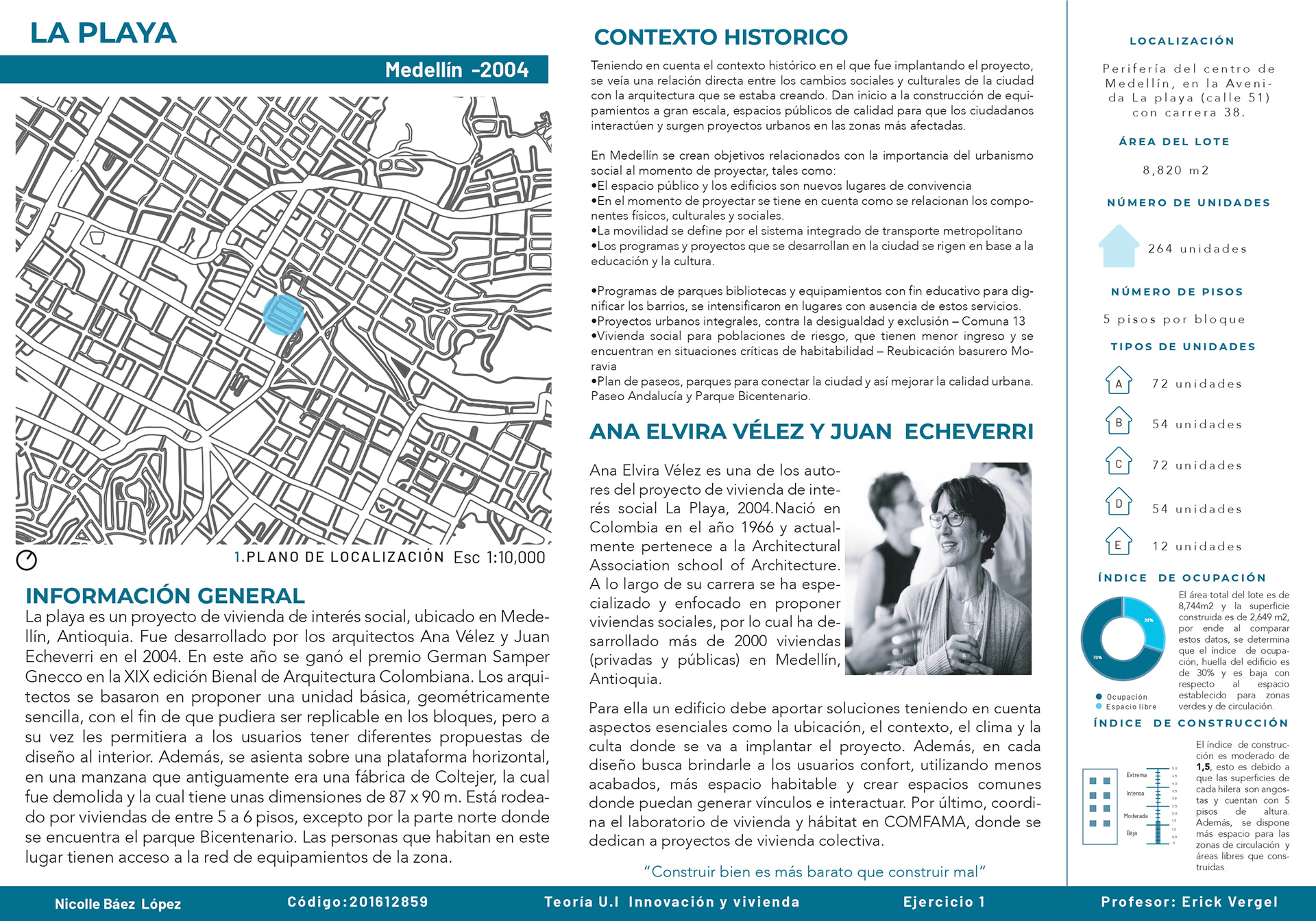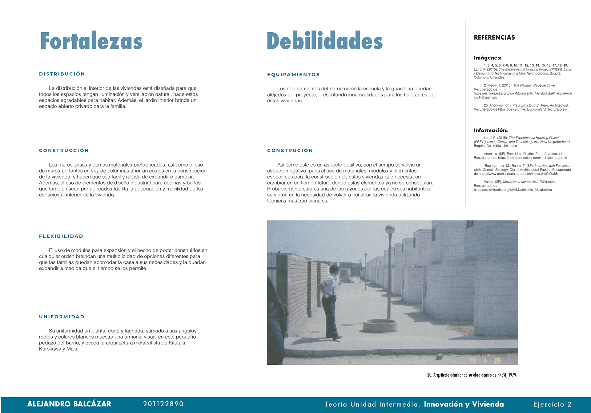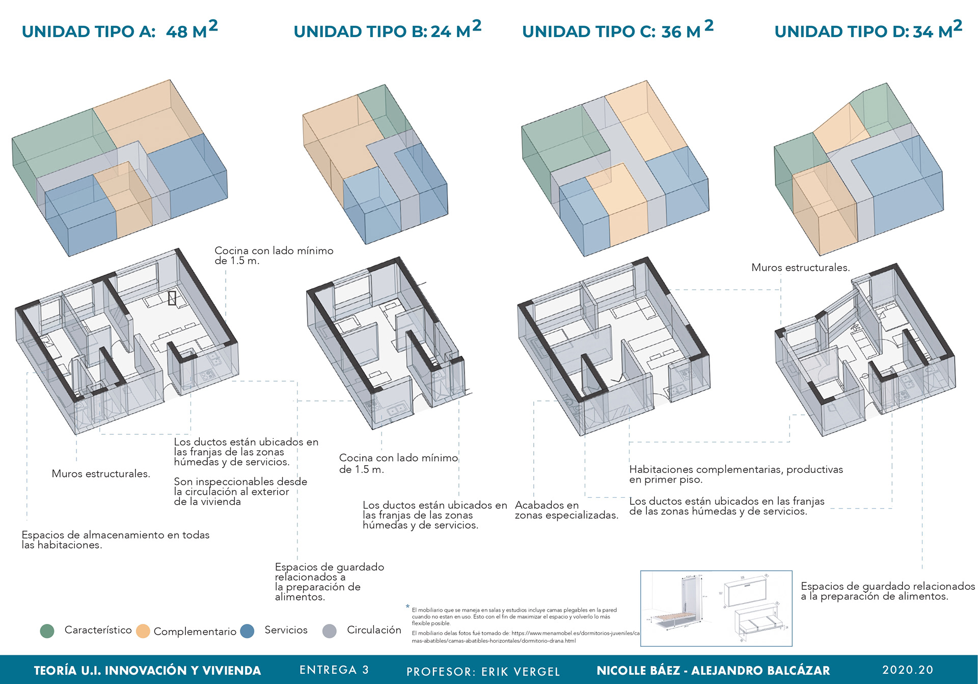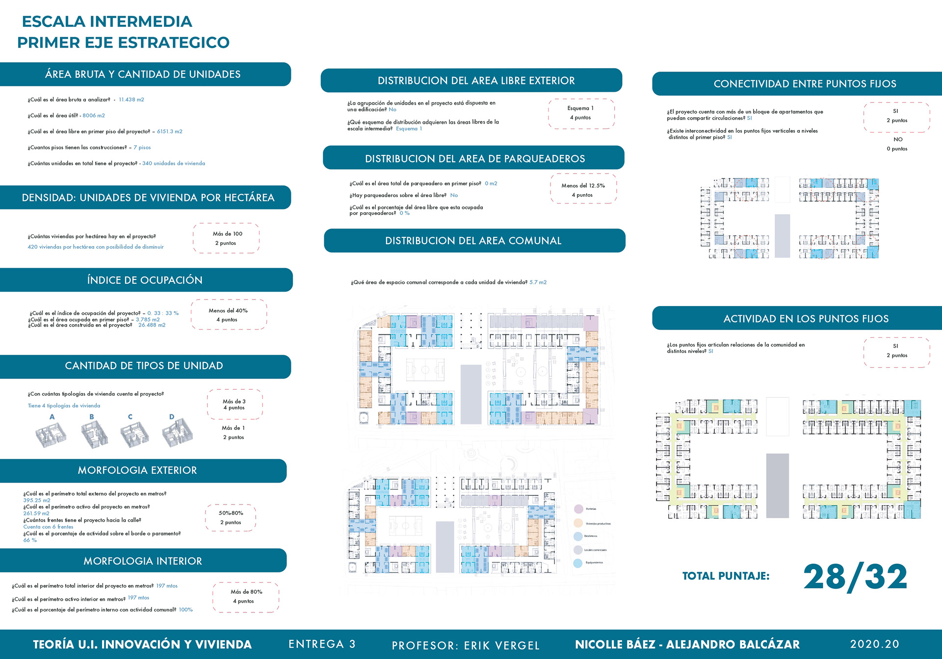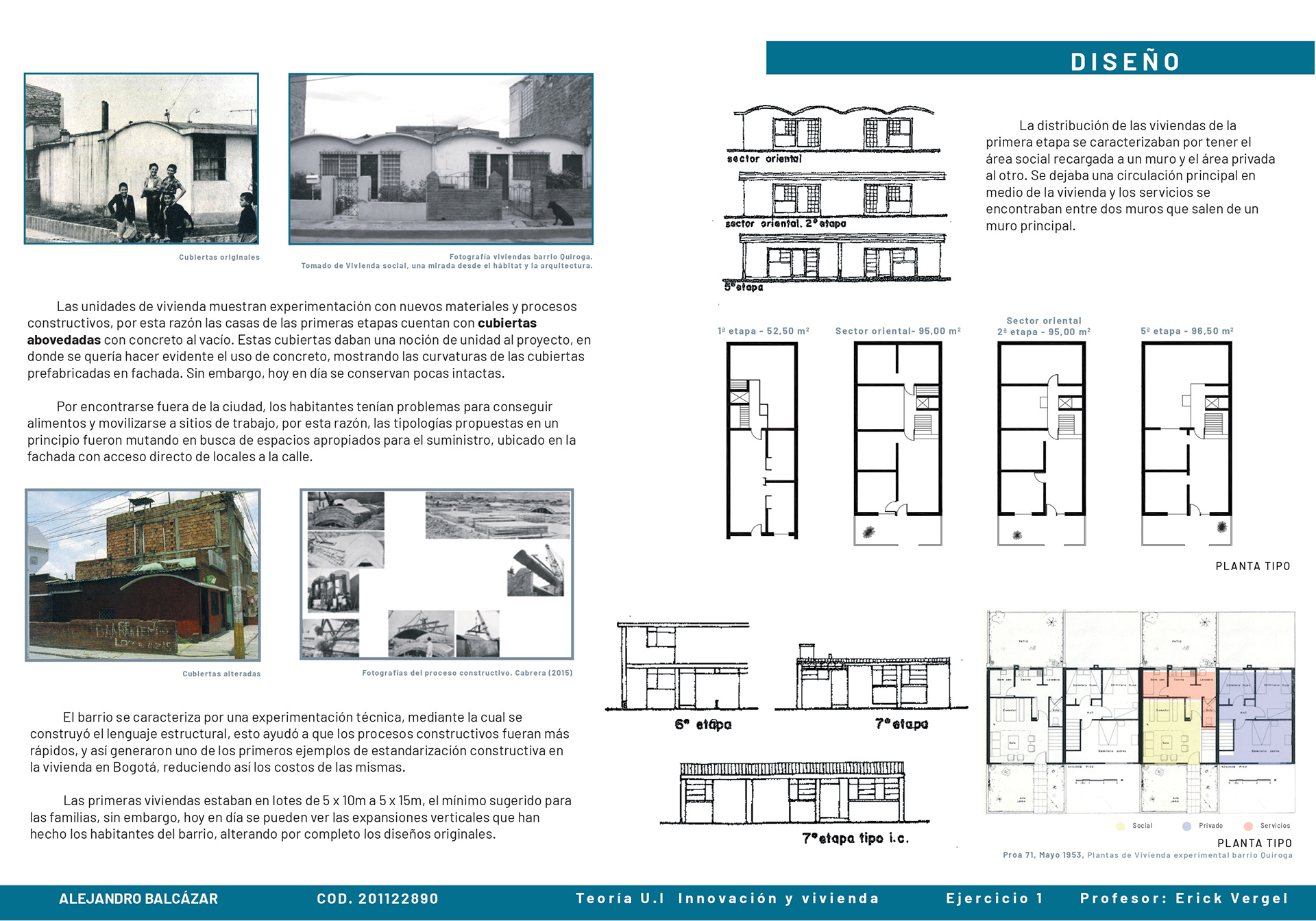 El curso de teorías de la unidad intermedia de Innovación y vivienda nos ayuda para analizar diferentes casos de estudio sobre vivienda de interés social a nivel nacional e internacional, los proyectos nos enseñan posibles soluciones de fachadas, diseño de espacios internos, desarrollo de la iluminación, ventilación y puntos fijos. También, se hizo un análisis de los perfiles de usuario y los equipamientos que se encontraban en el proyecto propuesto T+C. Para finalizar, se usaron las cartillas del Observatorio de vivienda para determinar los índices de escala intermedia y unidad, donde podíamos proponer nuevas soluciones para los problemas y observar donde estaba fallando nuestra propuesta.