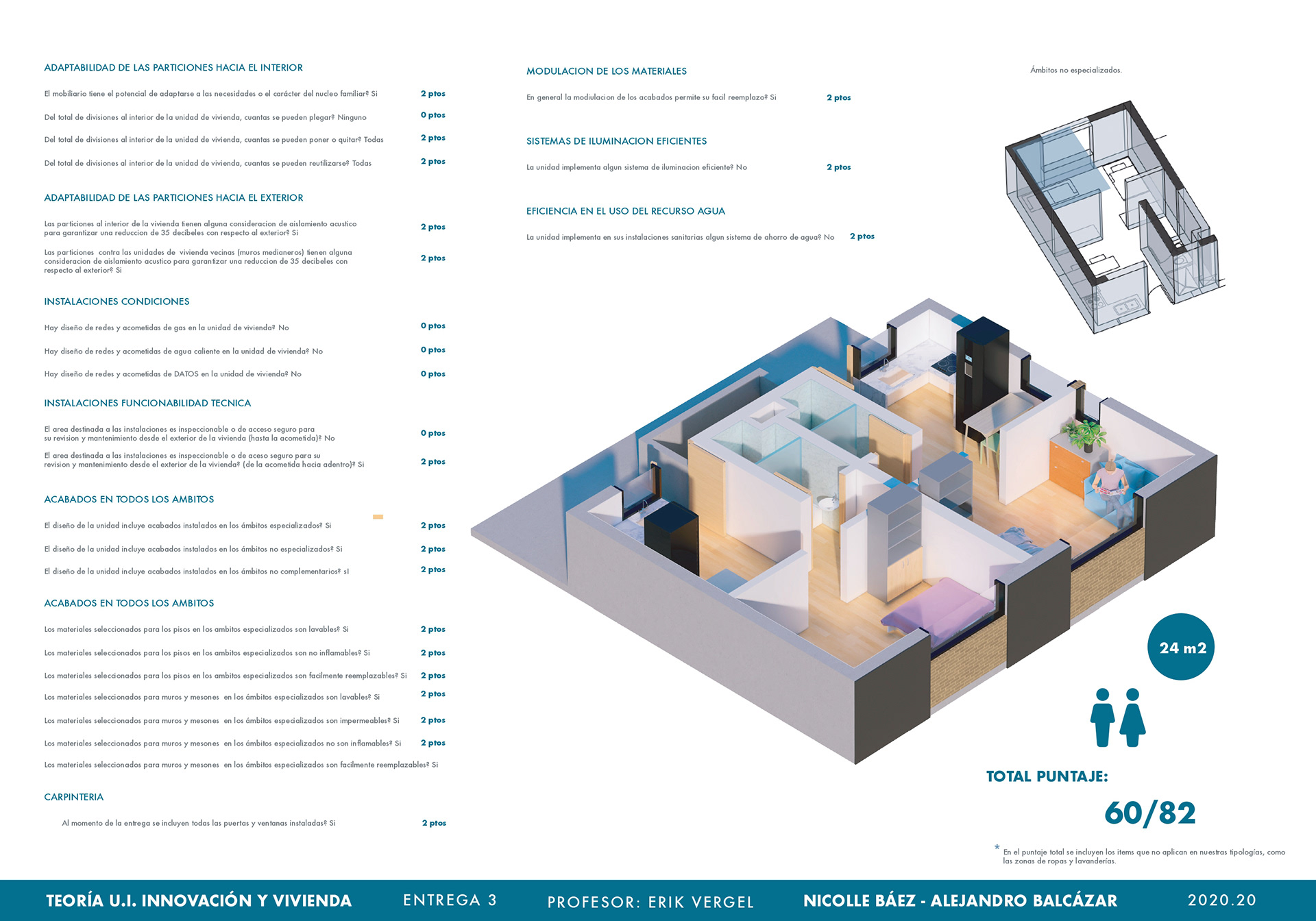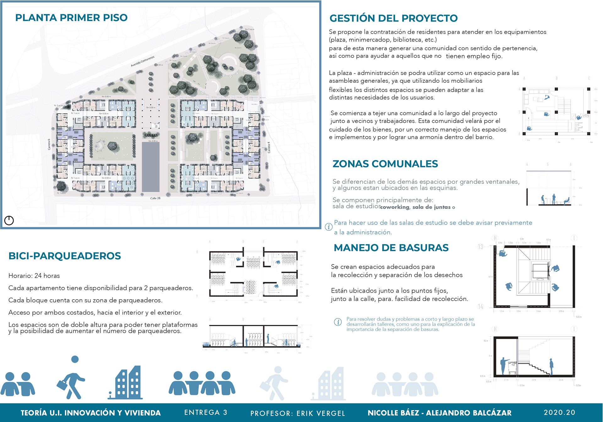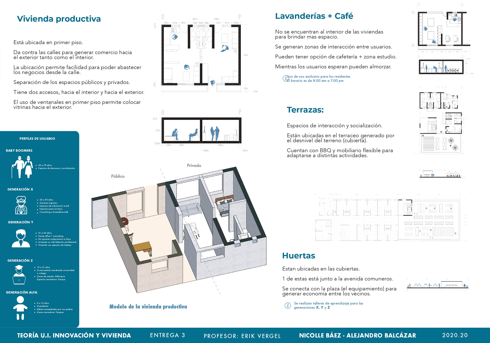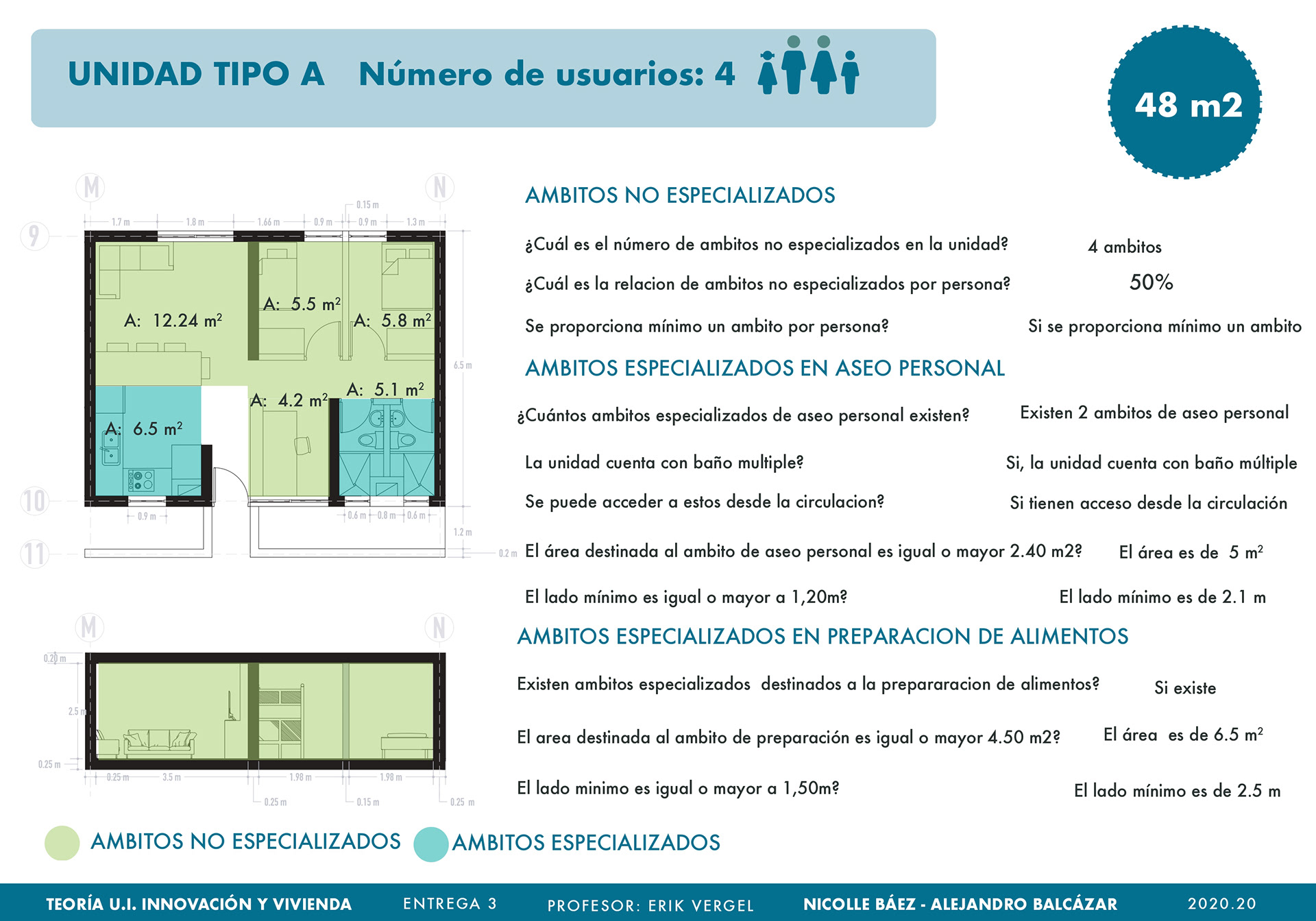 El curso de teorías de la unidad intermedia de Innovación y vivienda nos ayuda para analizar diferentes casos de estudio sobre vivienda de interés social a nivel nacional e internacional, los proyectos nos enseñan posibles soluciones de fachadas, diseño de espacios internos, desarrollo de la iluminación, ventilación y puntos fijos. También, se hizo un análisis de los perfiles de usuario y los equipamientos que se encontraban en el proyecto propuesto T+C. Para finalizar, se usaron las cartillas del Observatorio de vivienda para determinar los índices de escala intermedia y unidad, donde podíamos proponer nuevas soluciones para los problemas y observar donde estaba fallando nuestra propuesta.